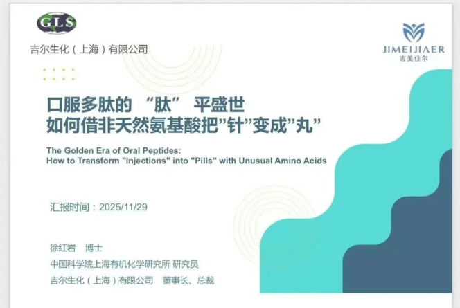 吉尔公司将做关于借特种氨基酸修饰实现多肽药口服目标的报告。