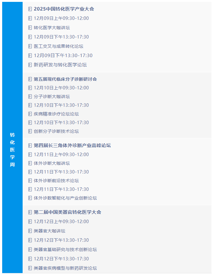 在此背景下,转化医学网应势而谋,全面整合旗下核心会议资源,首次推出以“转化医学周”为统一框架的2025年终超级学术-转化-产业平台,以“交叉创新·临床转化·产业协同”为核心理念,系统构建“基础发现→模型验证→产品开发→临床落地”的全链条转化引擎。我们诚邀合作伙伴共聚转化医学周,携手跨学科、跨领域顶尖专家,以跨界智慧激活临床价值,以生态协同定义转化医学新纪元!